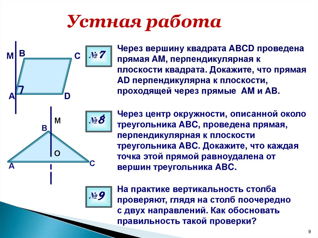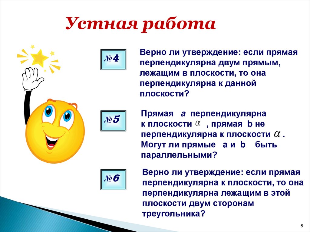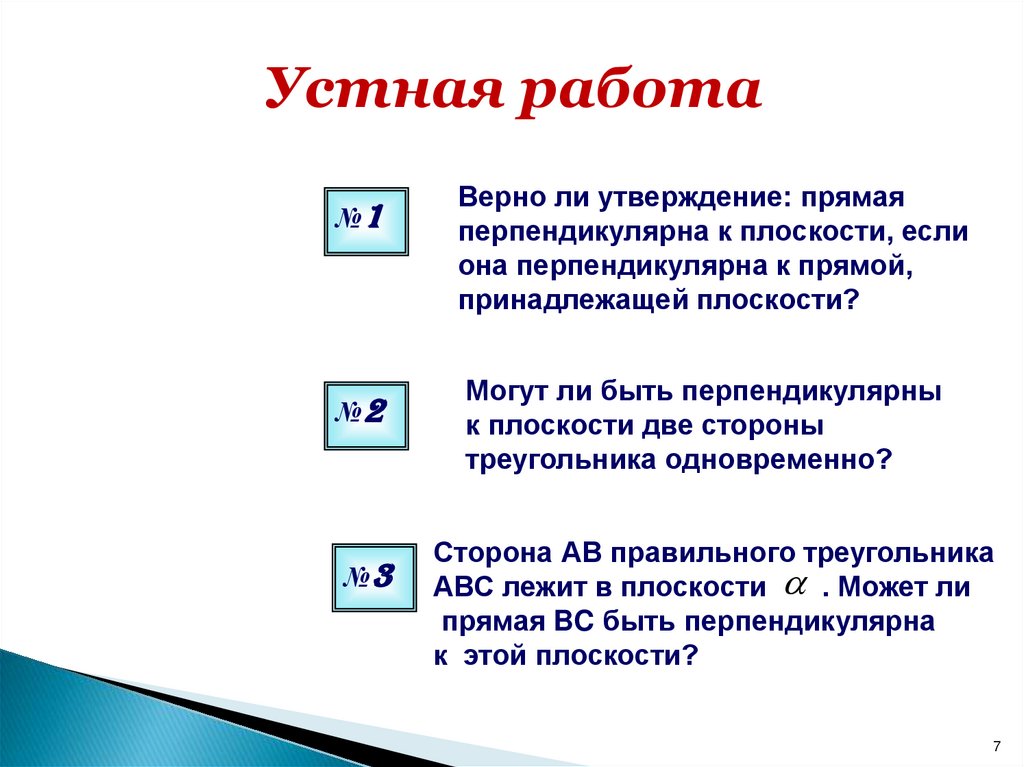 Обучающие:«открыть»понятия перпендикуляра и наклонной к плоскости;