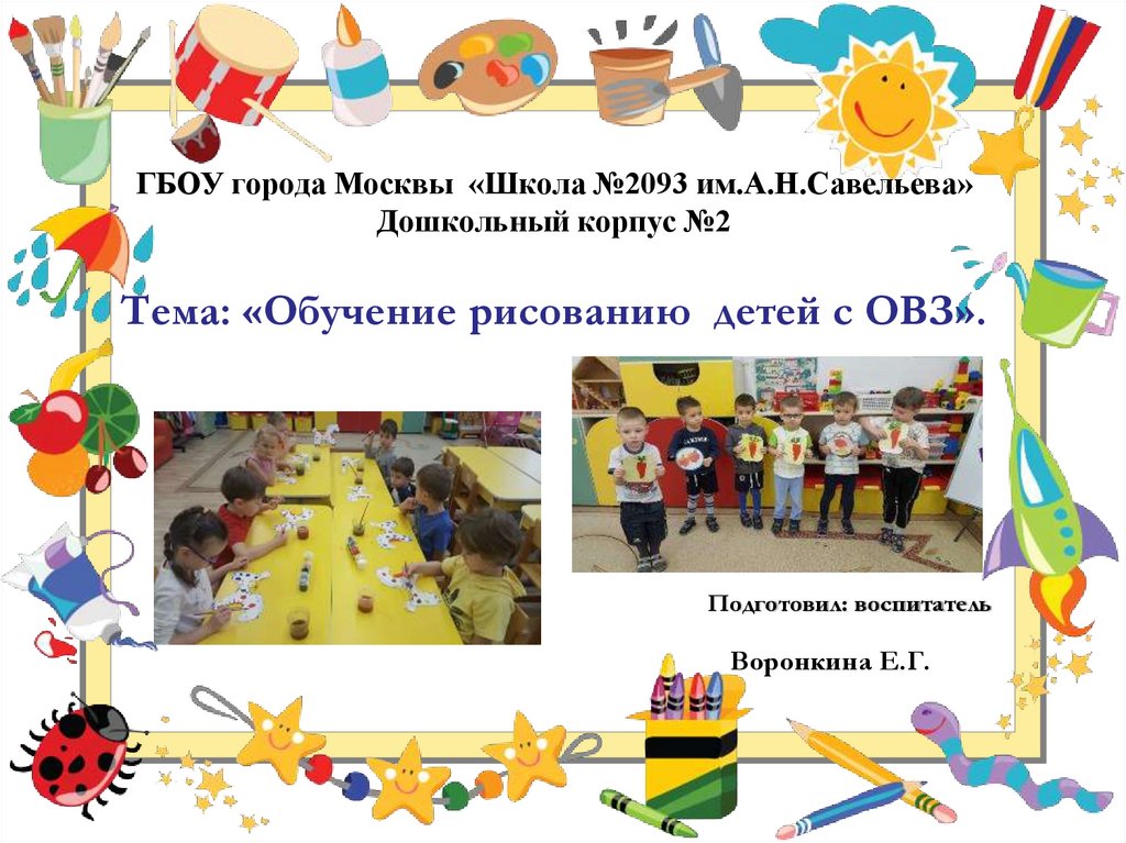 1. ГБОУ города Москвы «Школа №2093 им.А.Н.Савельева» Дошкольный корпус №2 Тема: «Обучение рисованию детей с ОВЗ».