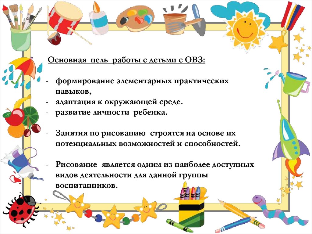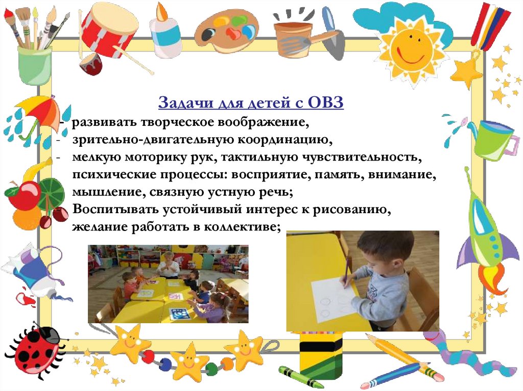 Задачи для детей с ОВЗ- развивать творческое воображение,
