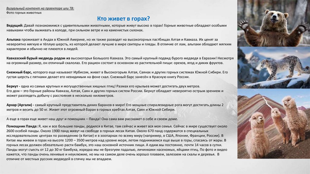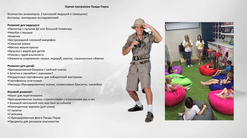 Горная программа Панды ПаркаКоличество аниматоров: 2 (основной ведущий и помощник)