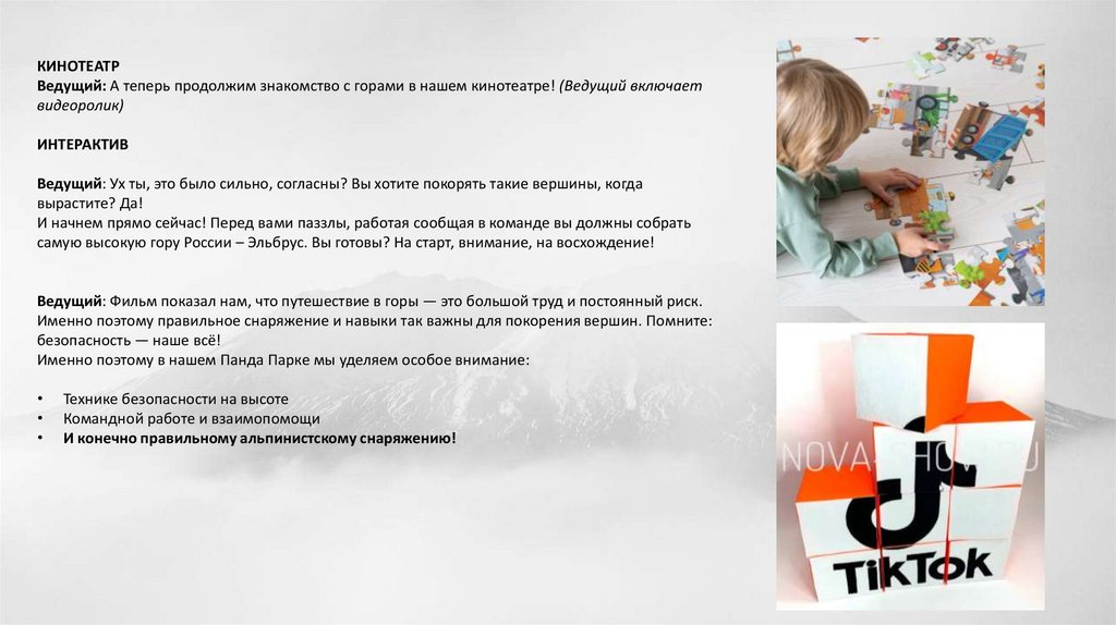 КИНОТЕАТРВедущий: А теперь продолжим знакомство с горами в нашем кинотеатре! (Ведущий включает