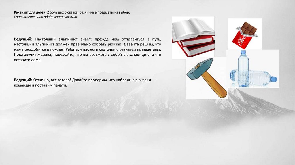 Ведущий: Настоящий альпинист знает: прежде чем отправиться в путь,
