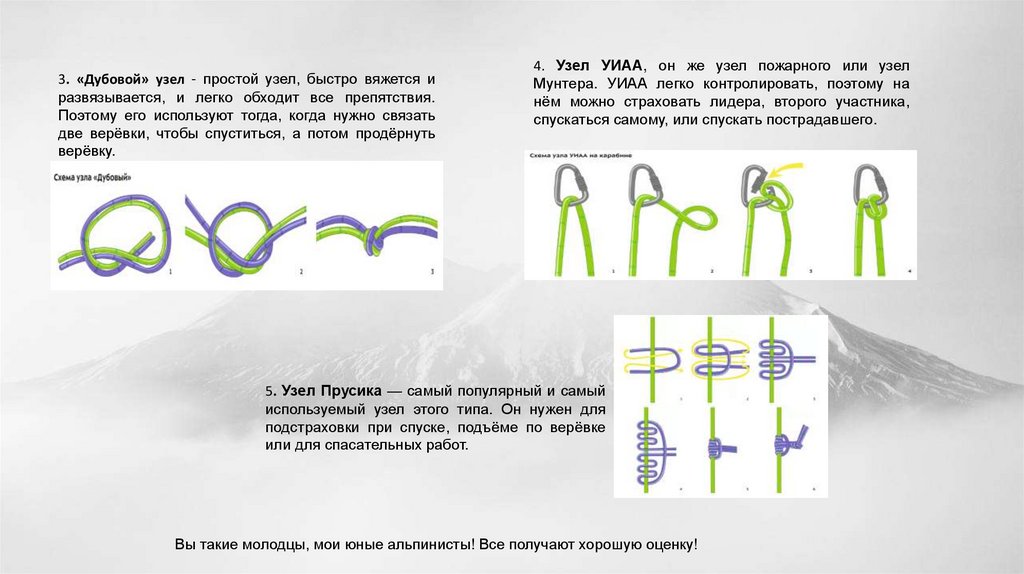 3. «Дубовой» узел - простой узел, быстро вяжется иразвязывается, и легко обходит все препятствия.