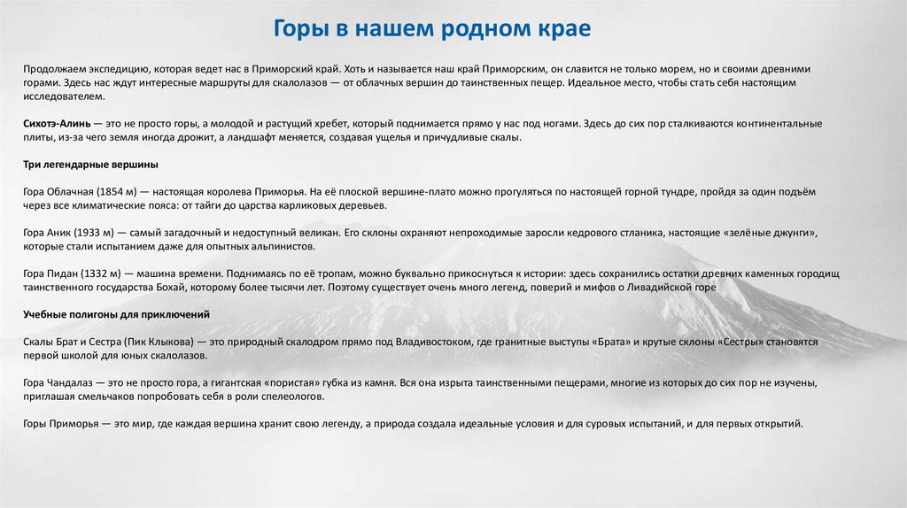 Мы узнаем много интересного и познавательного о горах и отработаем удивительные навыки,