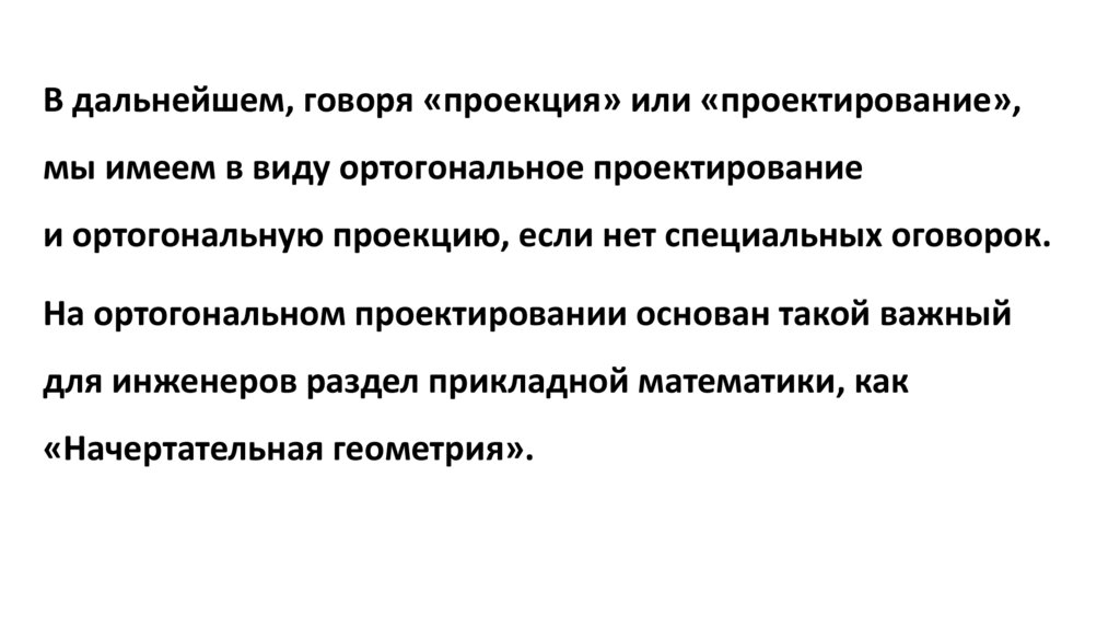 В дальнейшем, говоря «проекция» или «проектирование»,мы имеем в виду ортогональное проектирование
