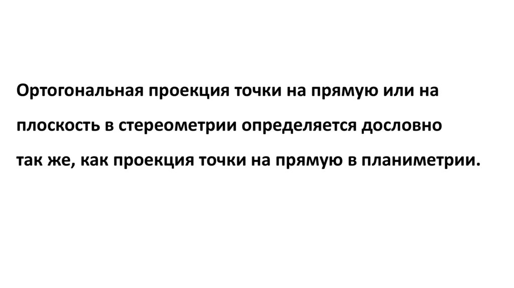 Ортогональная проекция точки на прямую или наплоскость в стереометрии определяется дословно