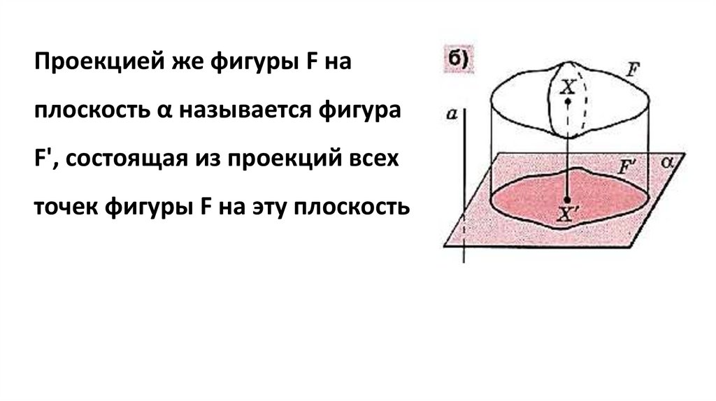 Проекцией же фигуры F наплоскость α называется фигура