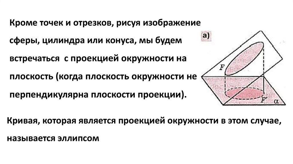 Кроме точек и отрезков, рисуя изображениесферы, цилиндра или конуса, мы будем