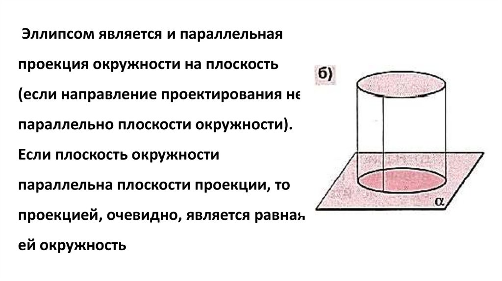 Эллипсом является и параллельнаяпроекция окружности на плоскость