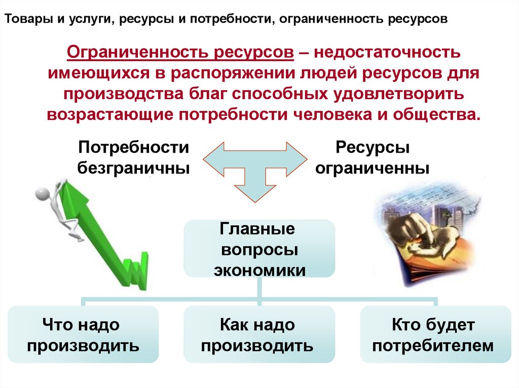 Товары и услуги, ресурсы и потребности, ограниченность ресурсовЭкономические потребности – внутренние мотивы,