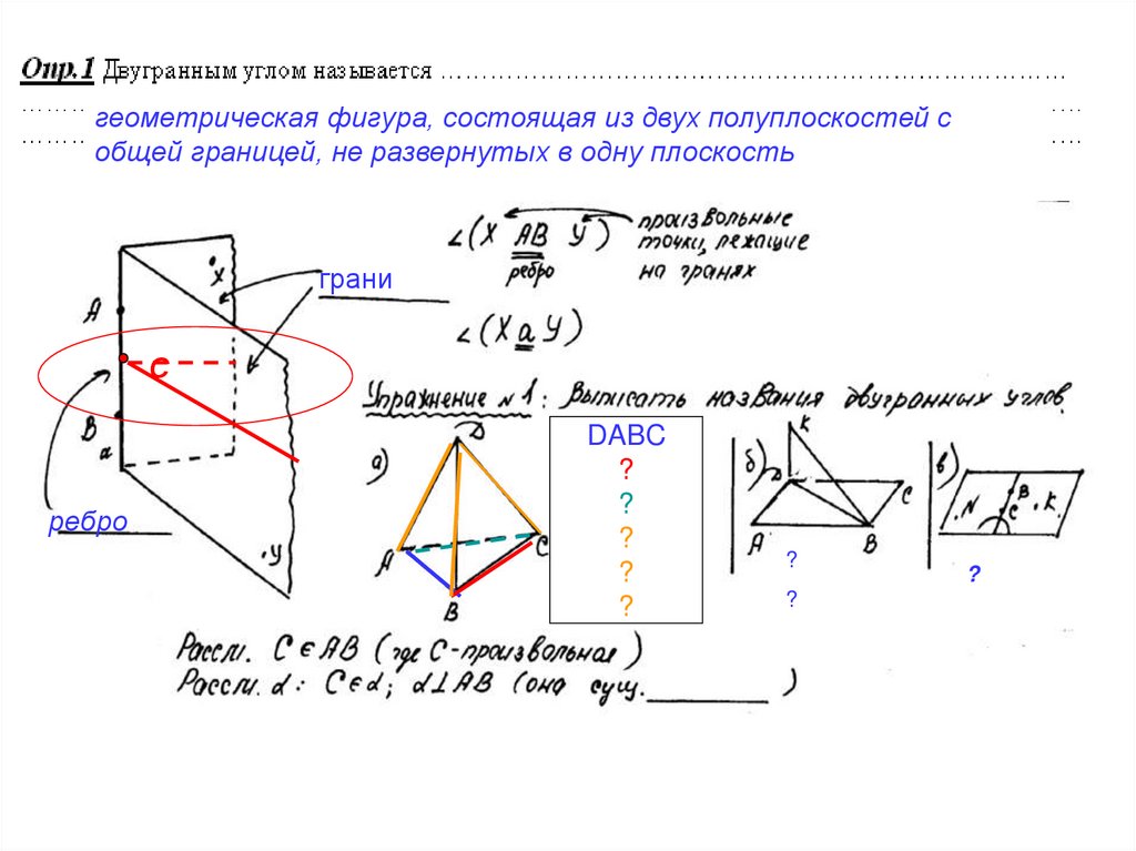 Найти ( увидеть) ребро и грани двугранного угла