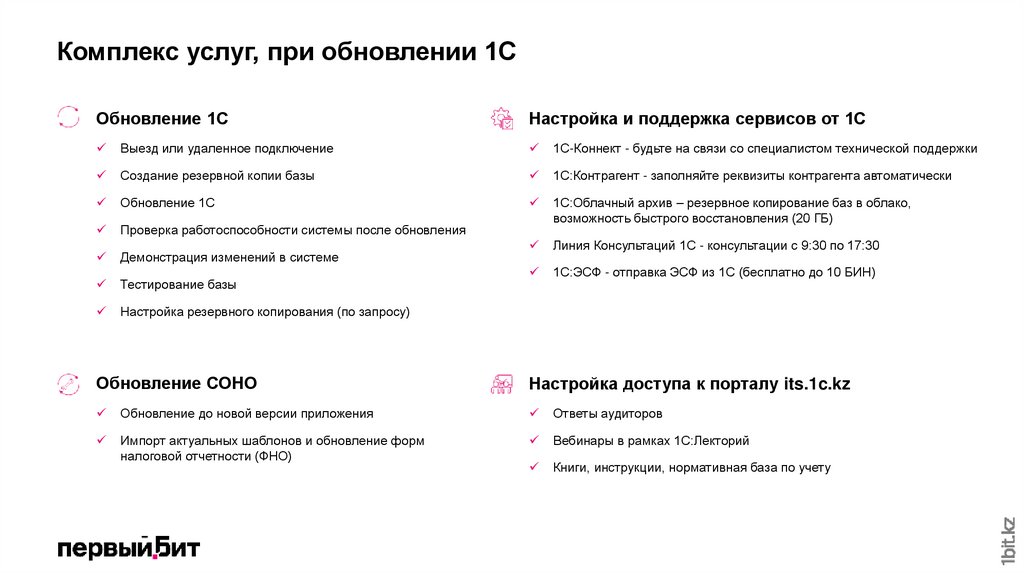 Комплекс услуг, при обновлении 1СОбновление 1С