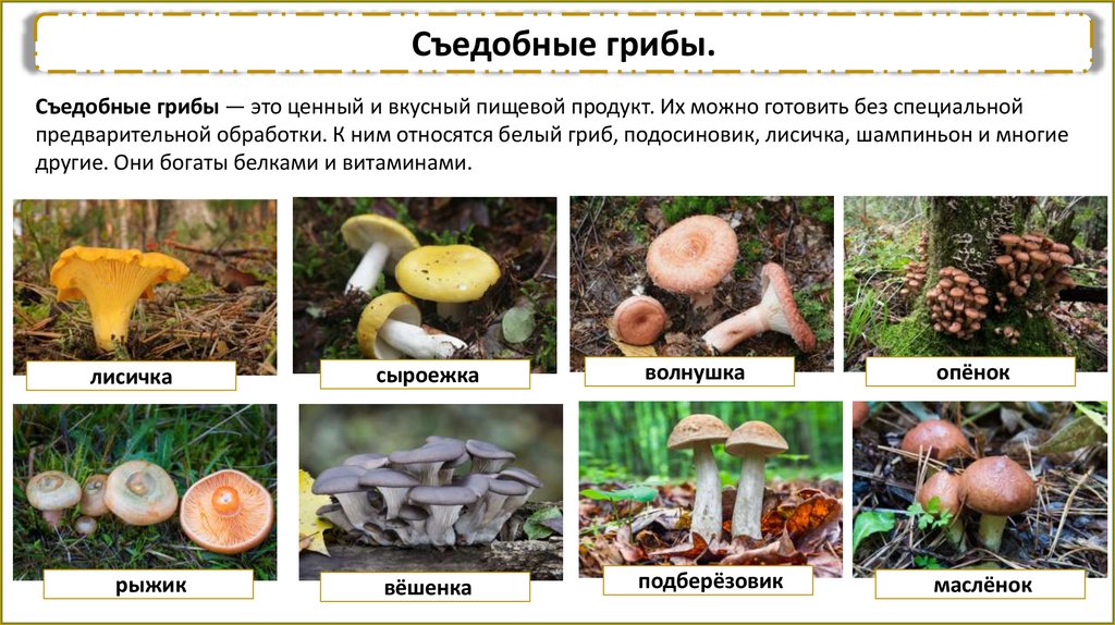 Съедобные грибы.Съедобные грибы — это ценный и вкусный пищевой продукт. Их можно готовить без специальной