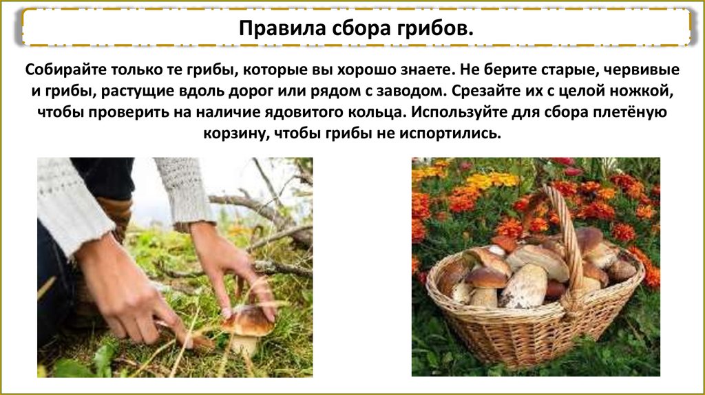 Правила сбора грибов.Собирайте только те грибы, которые вы хорошо знаете. Не берите старые, червивые