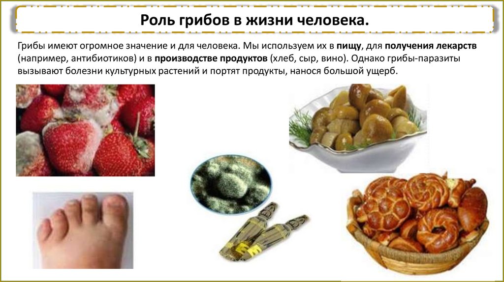 (например, антибиотиков) и в производстве продуктов (хлеб, сыр, вино). Однако грибы-паразиты
