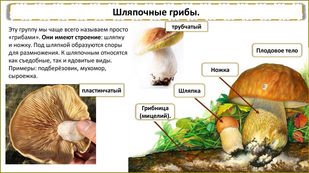 Примеры: подберёзовик, мухомор,