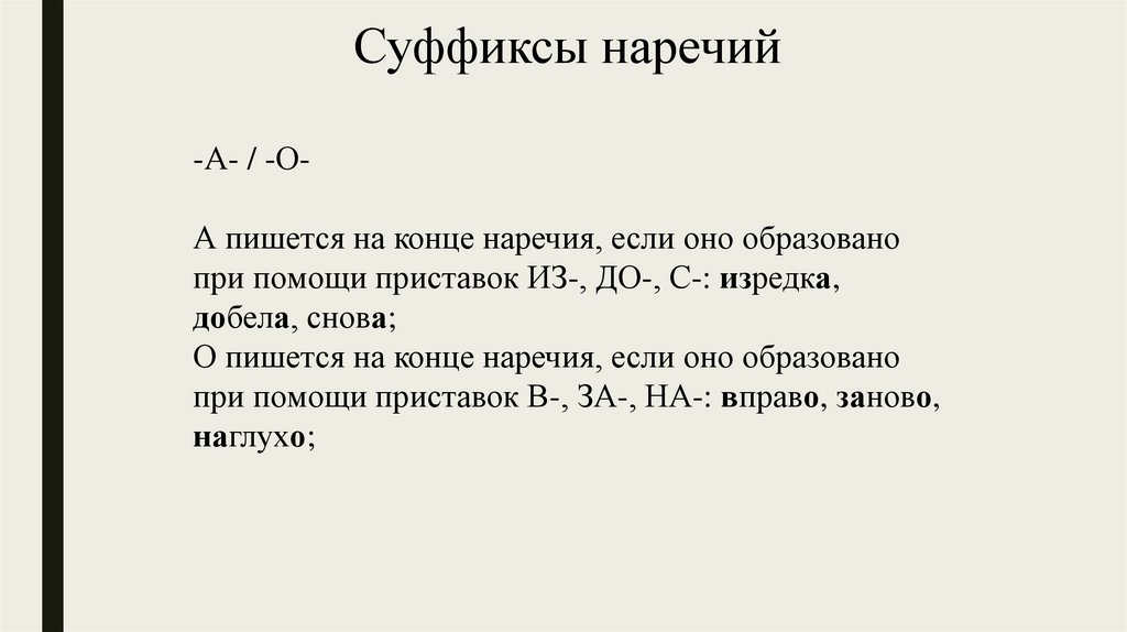 Суффиксы наречий-А- / -ОА пишется на конце наречия, если оно образовано