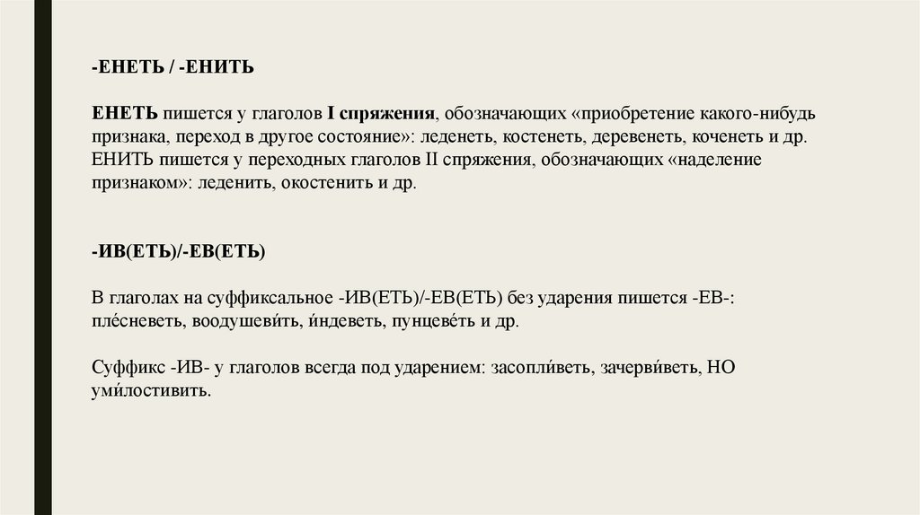 -ЕНЕТЬ / -ЕНИТЬЕНЕТЬ пишется у глаголов I спряжения, обозначающих «приобретение какого-нибудь