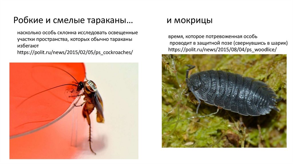Робкие и смелые тараканы…насколько особь склонна исследовать освещенные