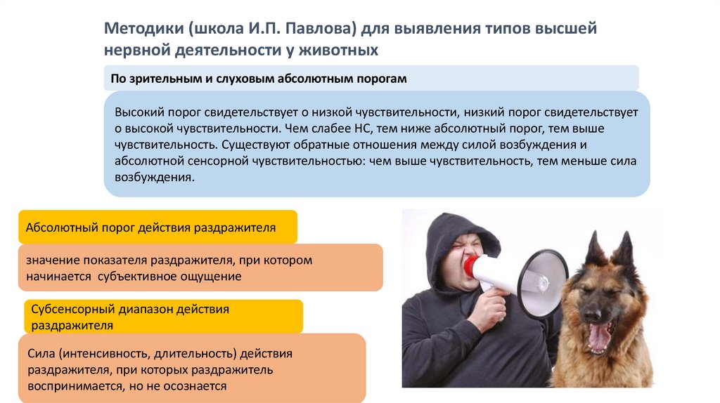Методики (школа И.П. Павлова) для выявления типов высшейнервной деятельности у животных