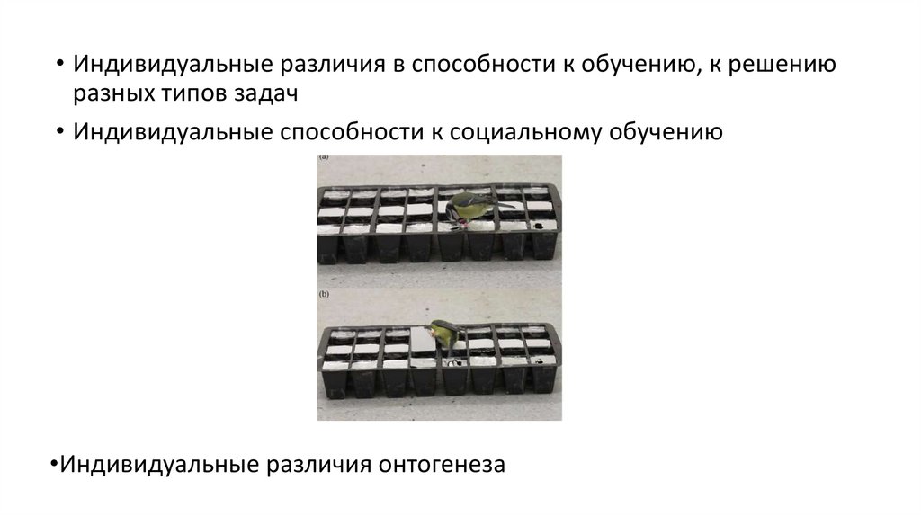 • Индивидуальные различия в способности к обучению, к решениюразных типов задач