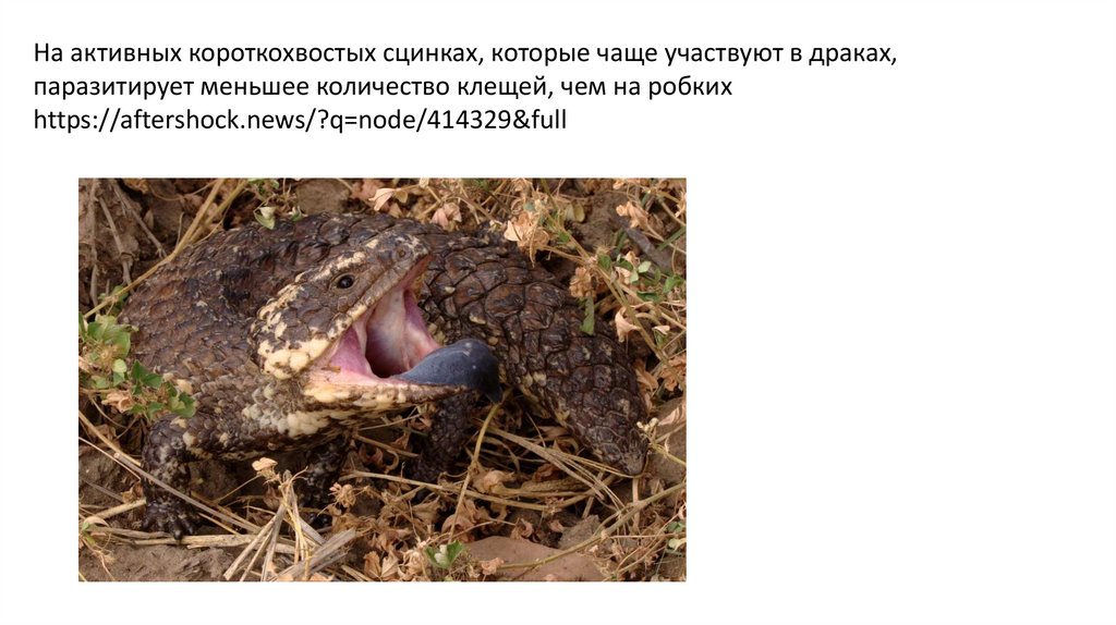 На активных короткохвостых сцинках, которые чаще участвуют в драках,паразитирует меньшее количество клещей, чем на робких