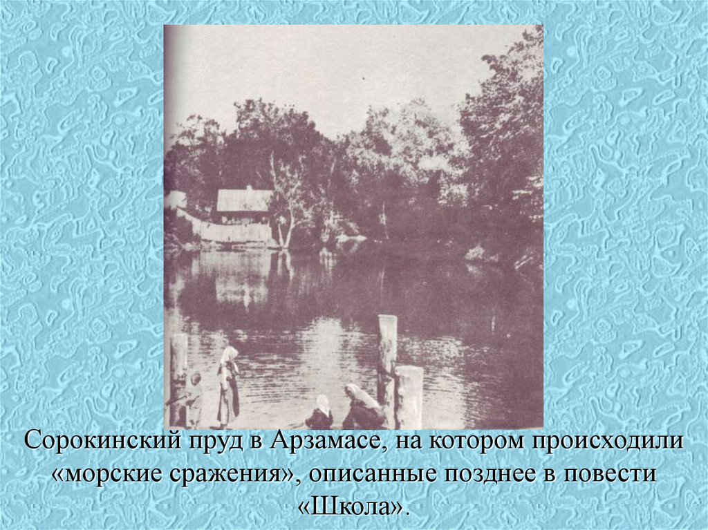 Сорокинский пруд в Арзамасе, на котором происходили«морские сражения», описанные позднее в повести