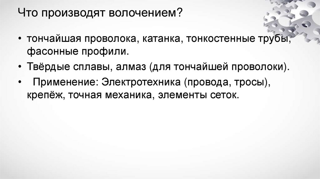 Что производят волочением?• тончайшая проволока, катанка, тонкостенные трубы,