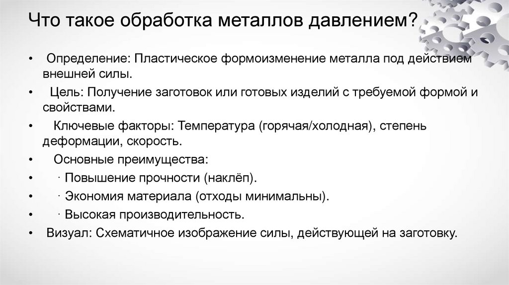 Что такое обработка металлов давлением?Определение: Пластическое формоизменение металла под действием