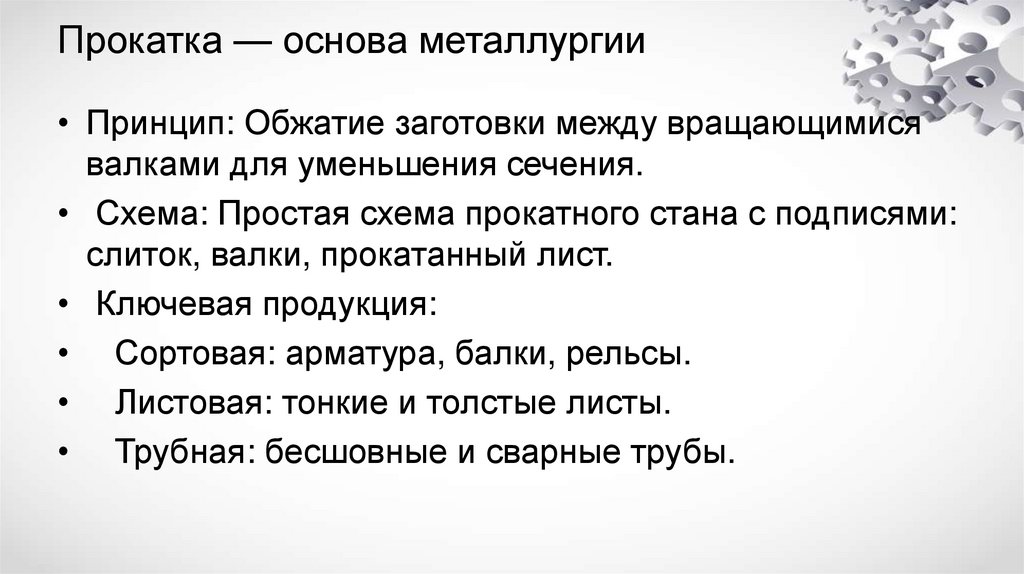 Прокатка — основа металлургии• Принцип: Обжатие заготовки между вращающимися