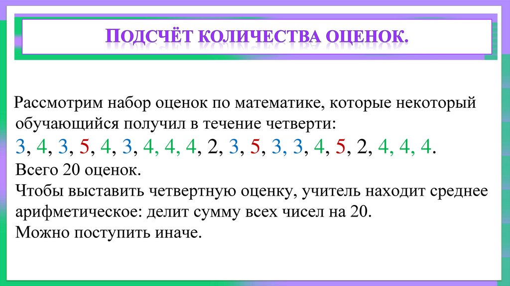 Рассмотрим набор оценок по математике, которые некоторыйобучающийся получил в течение четверти: