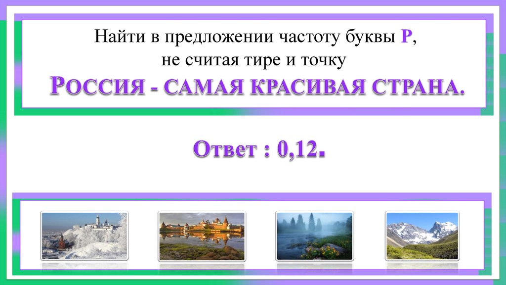 Найти в предложении частоту буквы Р,не считая тире и точку