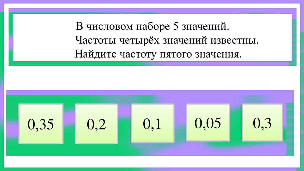 В числовом наборе 5 значений.Частоты четырёх значений известны.