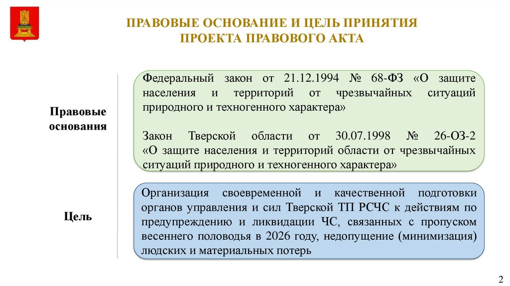ПРАВОВЫЕ ОСНОВАНИЕ И ЦЕЛЬ ПРИНЯТИЯПРОЕКТА ПРАВОВОГО АКТА
