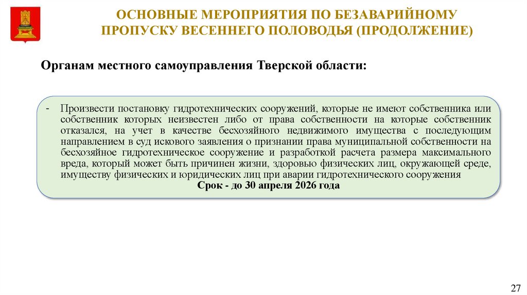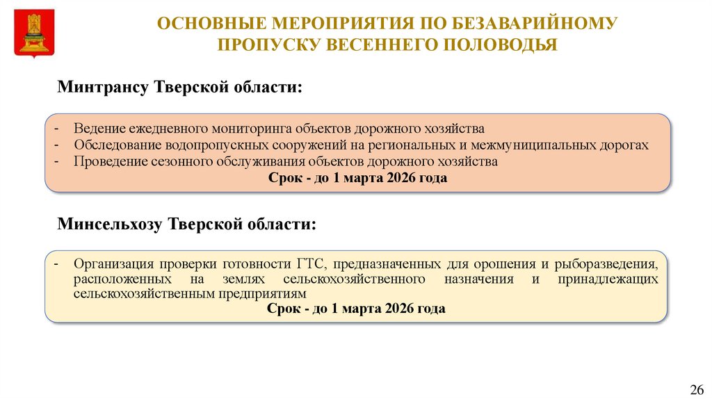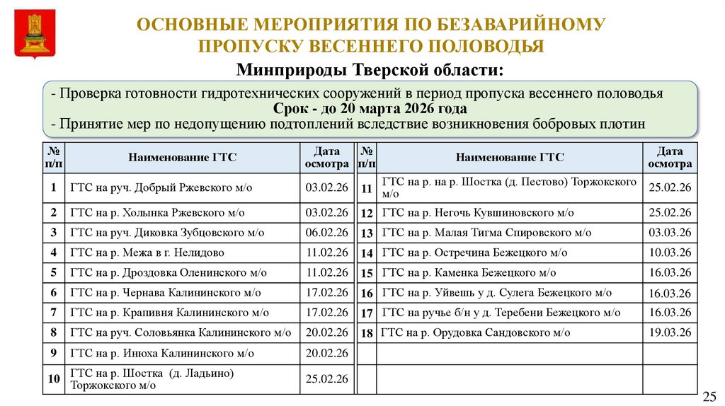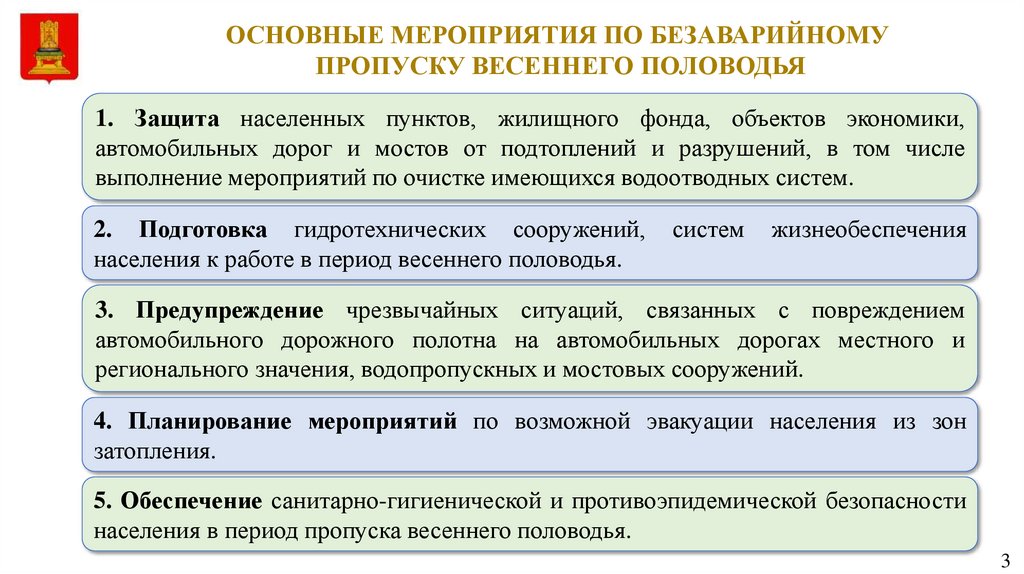 ОСНОВНЫЕ МЕРОПРИЯТИЯ ПО БЕЗАВАРИЙНОМУПРОПУСКУ ВЕСЕННЕГО ПОЛОВОДЬЯ