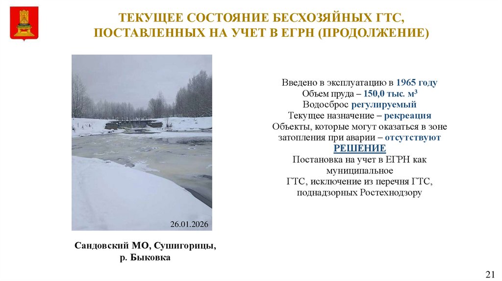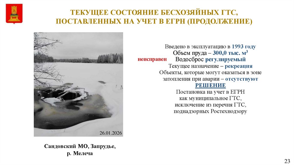 18 ГТС на р. Орудовка Сандовского м/о