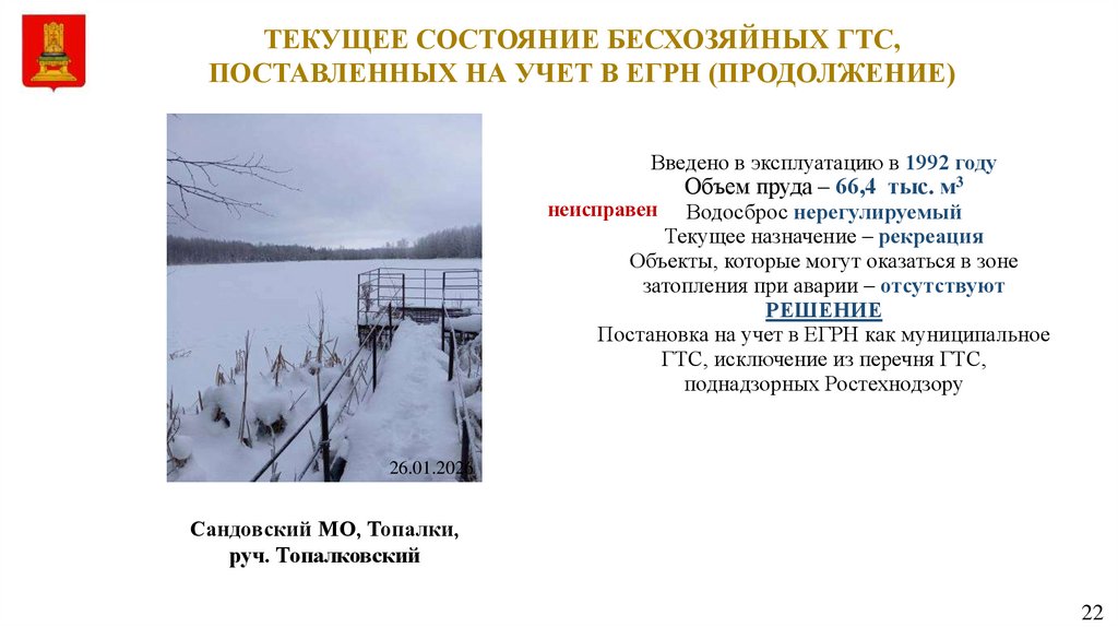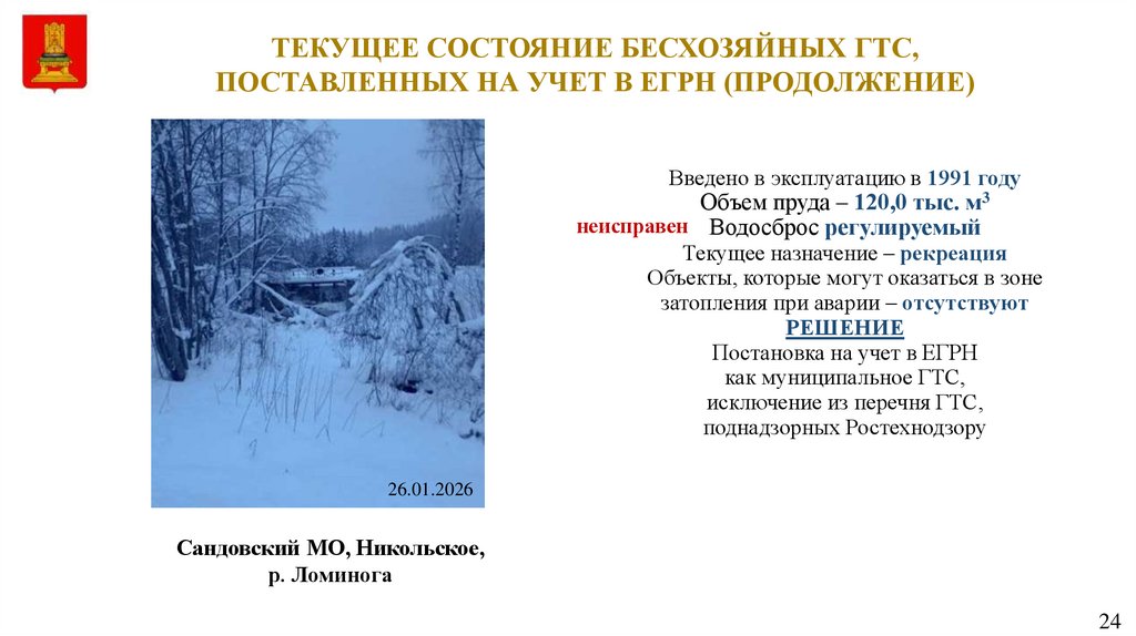 бесхозяйное гидротехническое сооружение и разработкой расчета размера максимального