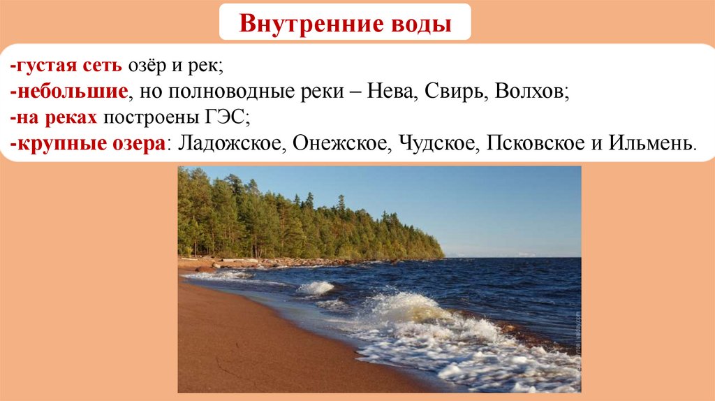 -небольшие, но полноводные реки – Нева, Свирь, Волхов;