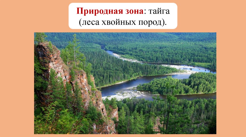 Природная зона: тайга(леса хвойных пород).