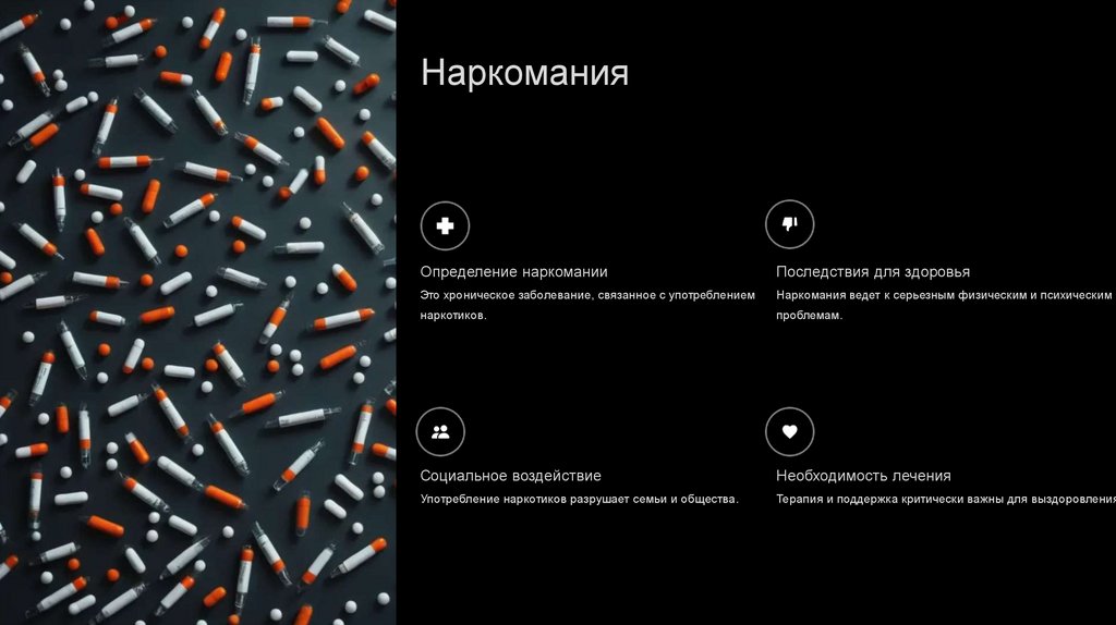 Употребление наркотиков разрушает семьи и общества.