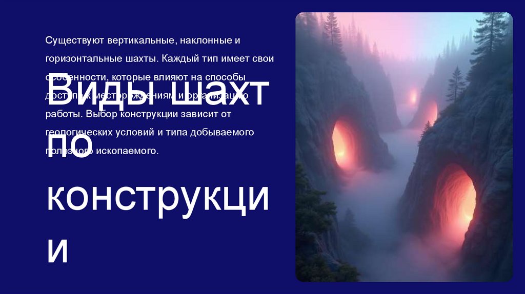 Шахты представляют собой сложные инженерные сооружения, предназначенные длядобычи полезных ископаемых из недр земли. Важно понимать их конструкцию и