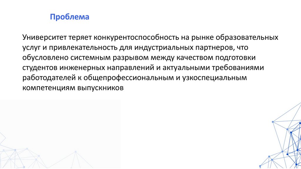 ПроблемаУниверситет теряет конкурентоспособность на рынке образовательных