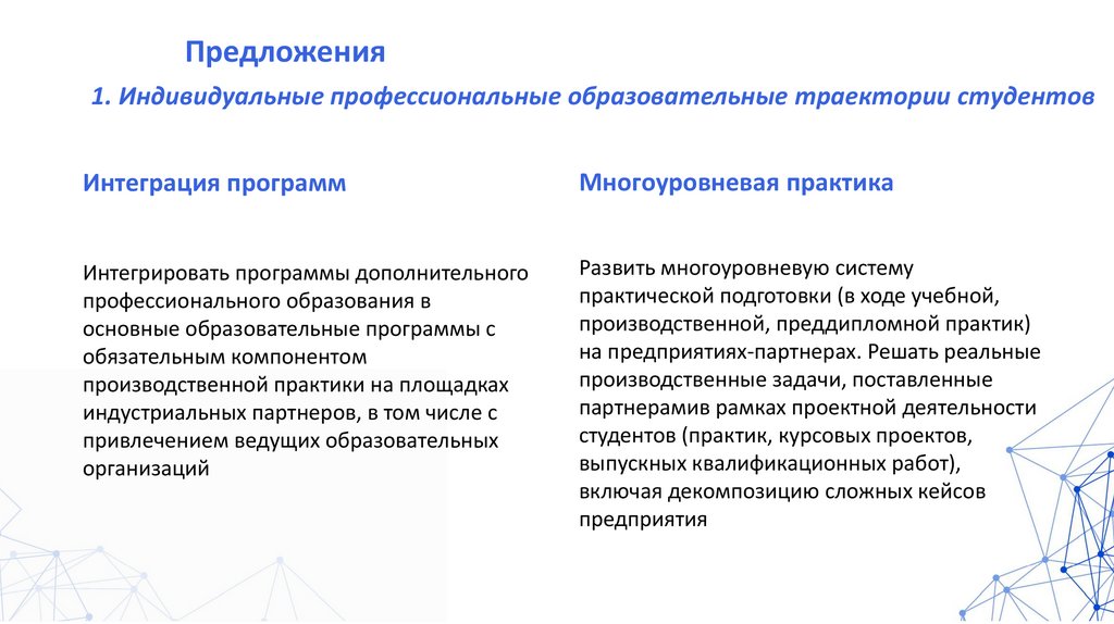 Предложения1. Индивидуальные профессиональные образовательные траектории студентов
