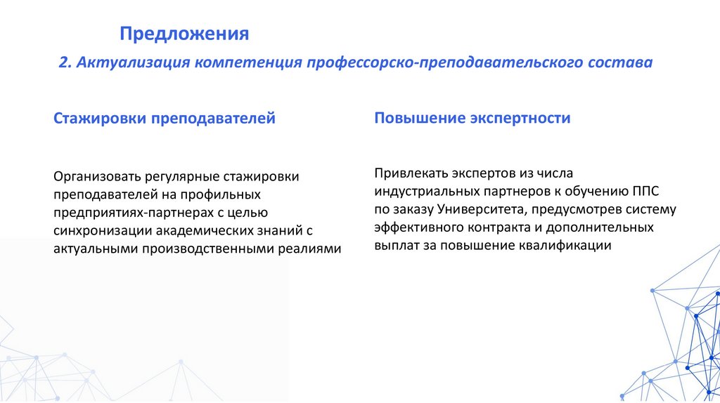 Предложения2. Актуализация компетенция профессорско-преподавательского состава