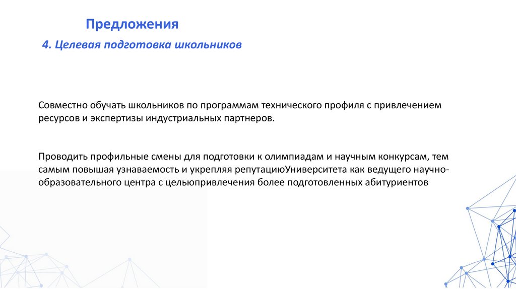 самым повышая узнаваемость и укрепляя репутациюУниверситета как ведущего научнообразовательного центра с цельюпривлечения более подготовленных абитуриентов