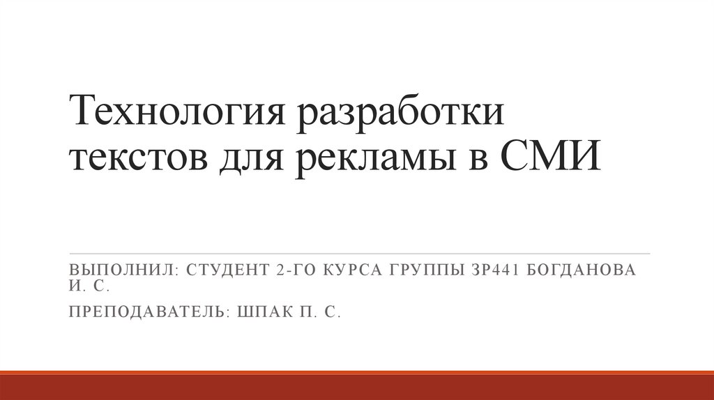 1. Технология разработки текстов для рекламы в СМИ