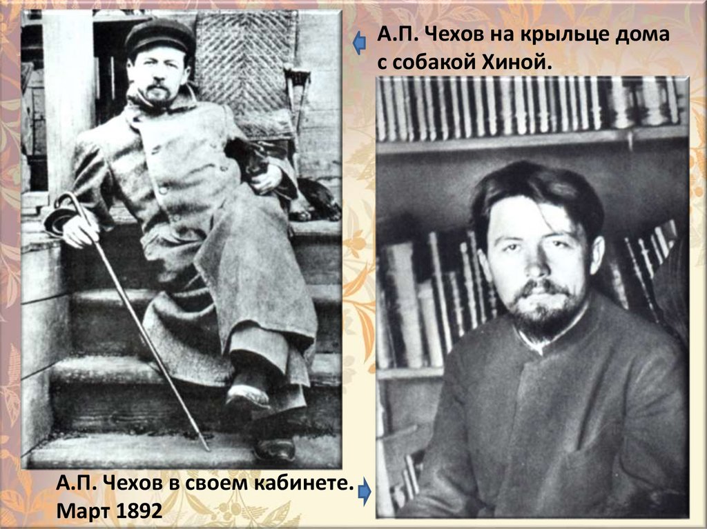 А.П. Чехов на крыльце домас собакой Хиной.