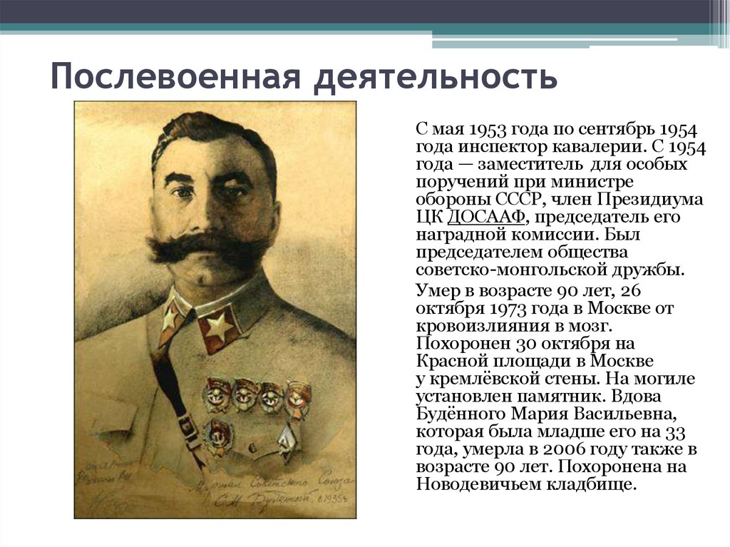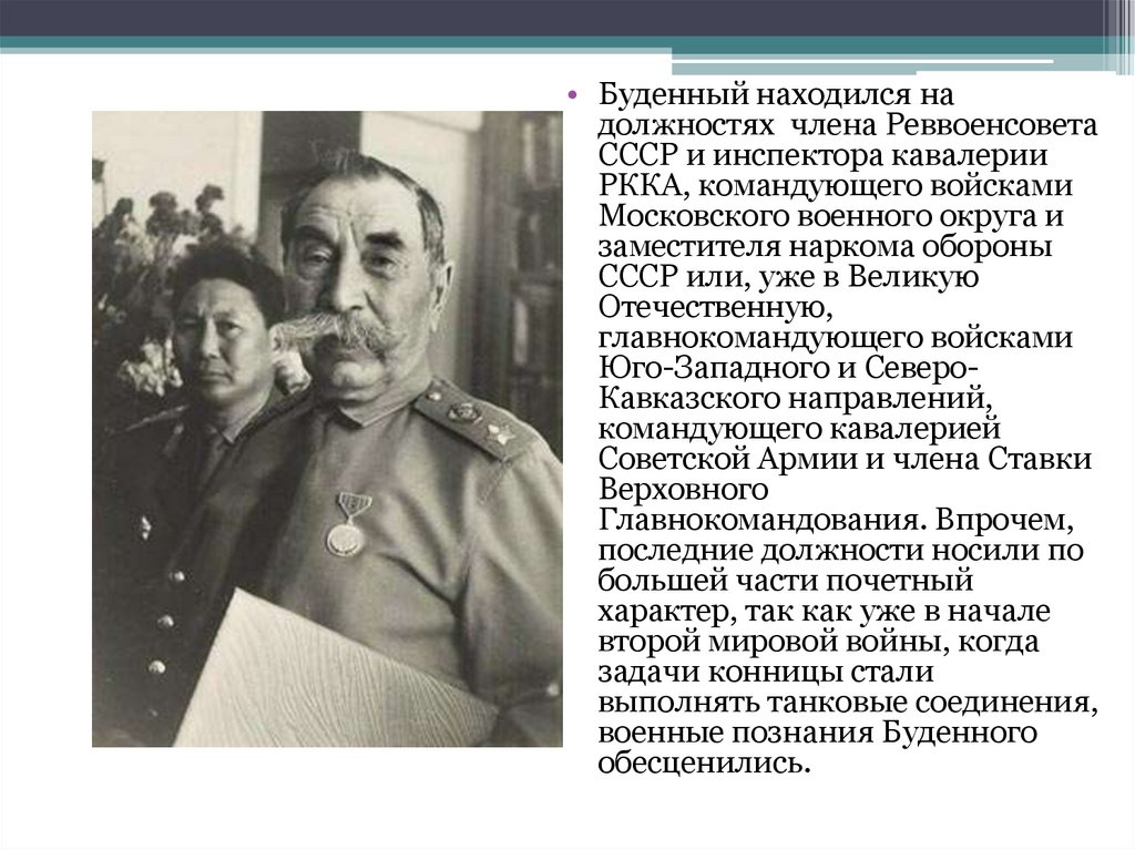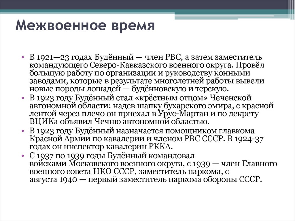 Межвоенное время• В 1921—23 годах Будённый — член РВС, а затем заместитель