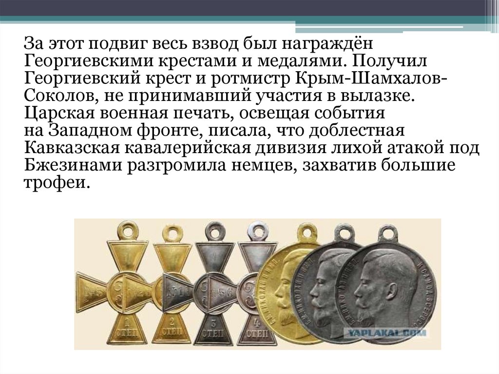 Георгиевский крест и ротмистр Крым-ШамхаловСоколов, не принимавший участия в вылазке.