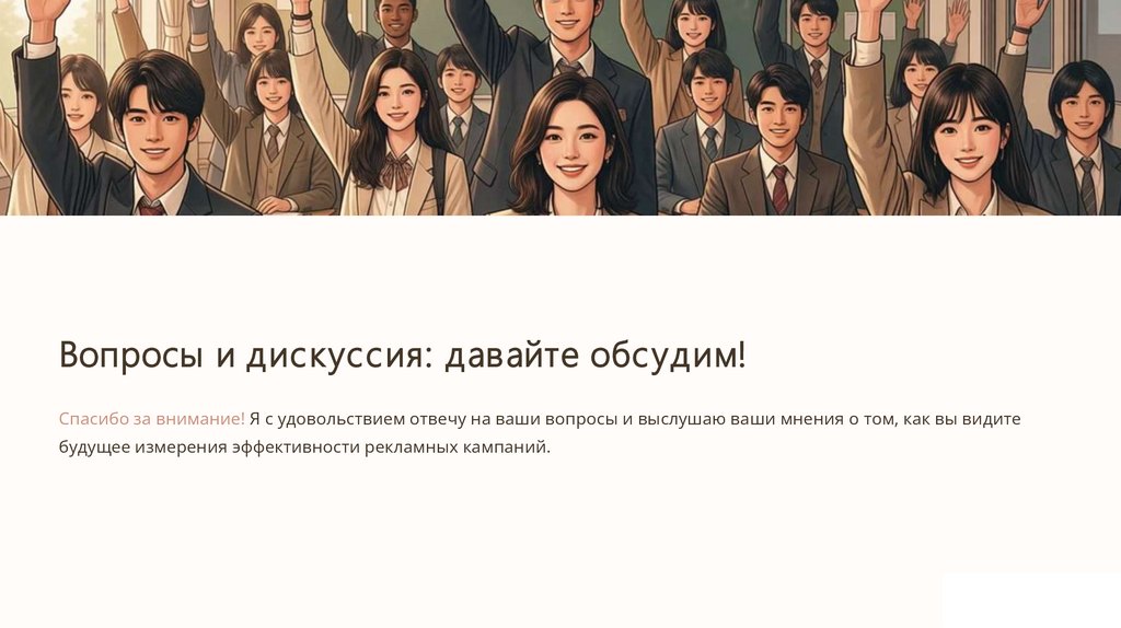Вопросы и дискуссия: давайте обсудим!Спасибо за внимание! Я с удовольствием отвечу на ваши вопросы и выслушаю ваши мнения о том, как вы видите